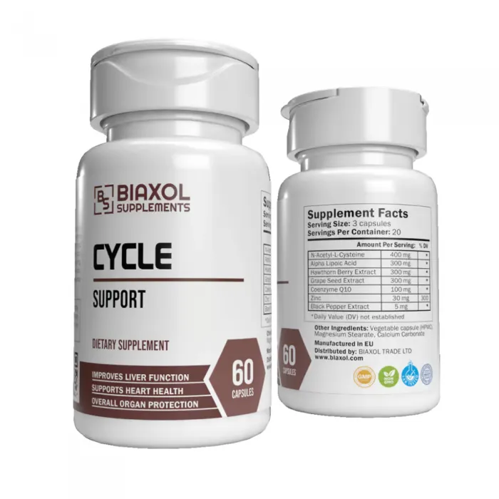Cycle Support is the protection you take before, during and after any hard cycle. Three capsules a day deliver clinical-grade antioxidants, liver detox agents and heart-protective extracts that keep enzymes, blood pressure and lipids in the green while you grow.